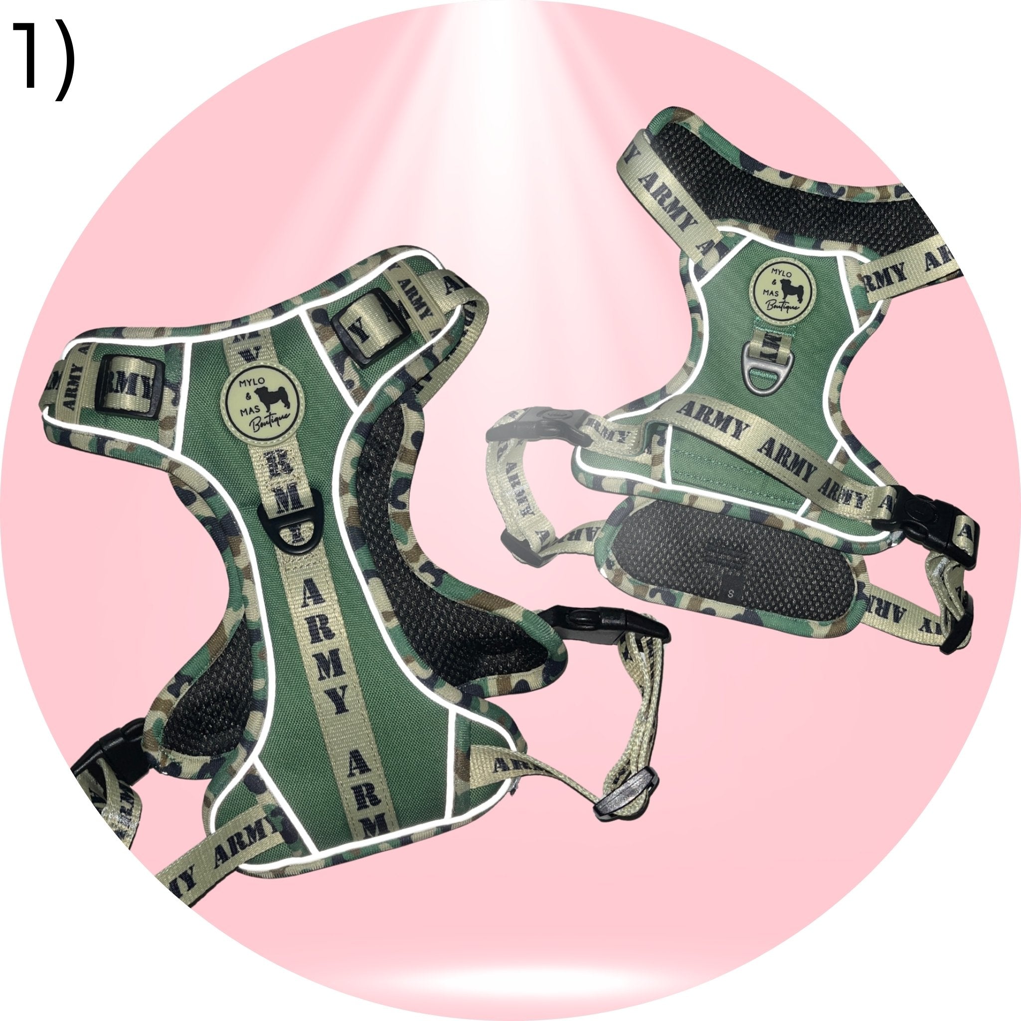 I love Mylo and Mas for harnesses for my little maltichon Arlo. They are the best in the business in my opinion.